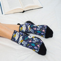 Our Peanuts licensed socks feature designs inspired by the beloved Peanuts comic strip characters, such as Snoopy, Charlie Brown, and Woodstock. These patterns are officially licensed, ensuring that they meet the quality and design standards set by the Peanuts brand.