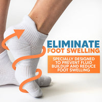 Viasox reduce foot fluid buildup, easing pressure and relieving pain.